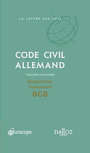 Code civil allemand / Bürgerliches Gesetzbuch BGB . Traduction commentée - 1ère édition: Coédition Juriscope / Dalloz par Gwendoline Lardeux ont été vendues pour EUR 79,00 chaque exemplaire. Le livre publié par Dalloz. Il contient 704 pages et classé dans le genre Thèmes. Ce livre a une bonne réponse du lecteur, il a la cote 5 des lecteurs 618. Inscrivez-vous maintenant pour accéder à des milliers de livres disponibles pour téléchargement gratuit. L'inscription était gratuite.
